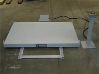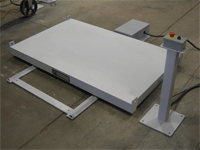 Power shuttle table for moving melting furnaces in and out of operating position.