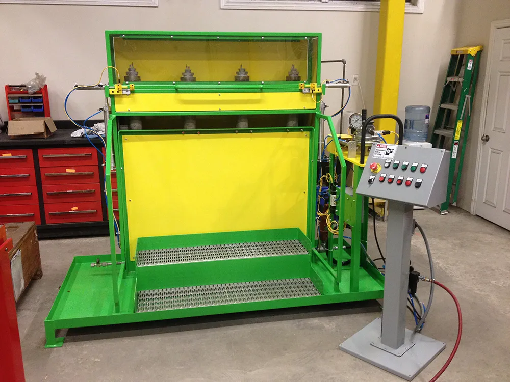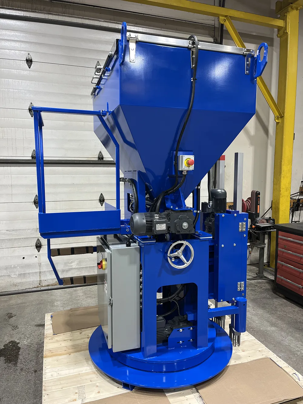 1- Custom Designed grab for lifting and loading foam blocks. Ability to sense “crushing force” so as not to damage the blocks.